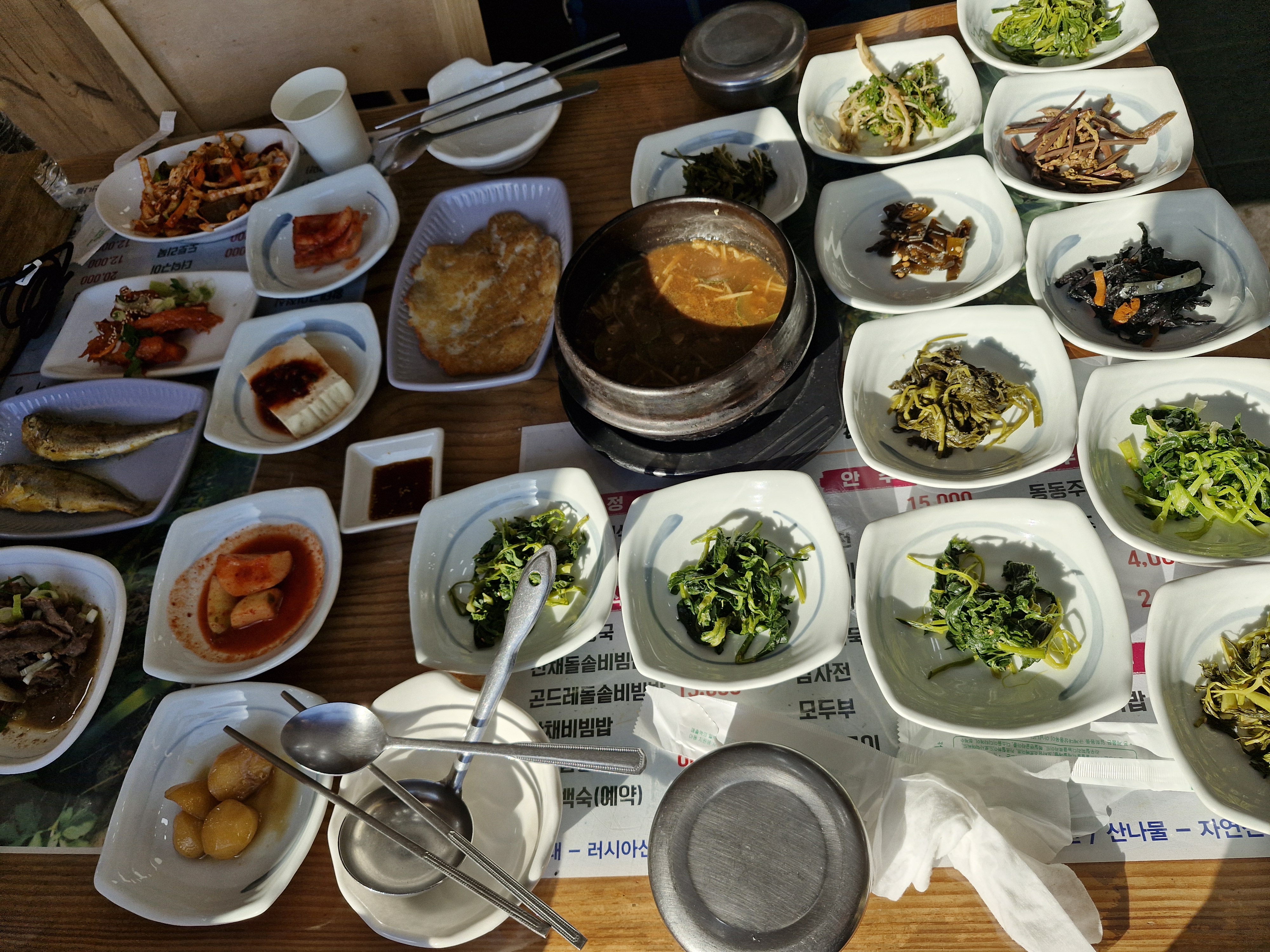 월정사 주차장에 도착하여 가마솥 식당에서 정식(12,000원)을 주문하니 오대산에서 뜯은 산나물이 정갈하고 맛이 있어서 리필을 했다. 고기는 손을 대지 않고 산나물만 먹었다.