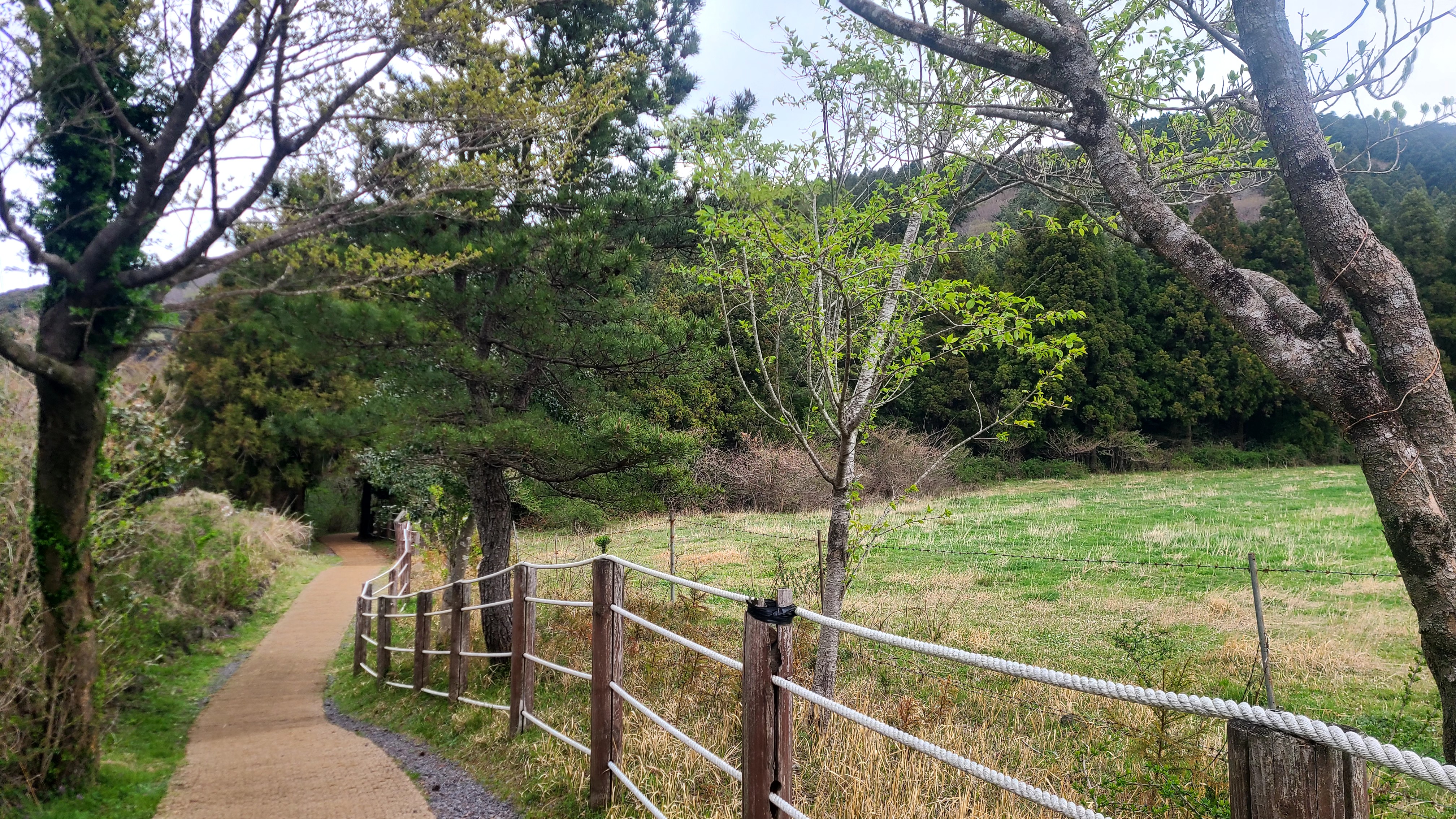 한참을 걷다가 소몰이길이 시작하는 곳에서 소가 도망가지 못하도록 길을 막아둔 곳, 그래서 사람이 돌아가며 나갈수 있도록 문을 만들어 둔 곳에 점퍼가 철퍼덕하고 엎드러져 있다.